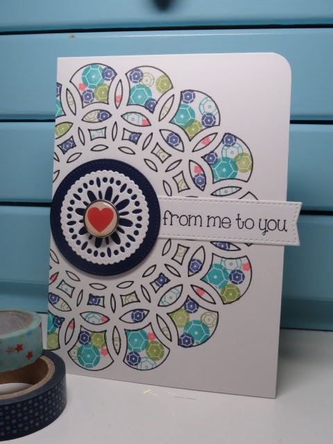 In de cirkel stans van Memory Box, is het net alsof ze heel hard rondjes draaien door de streepjes die ik erbij heb getekend. Papier is van Echo Park.