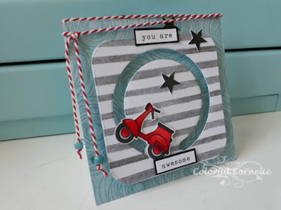 Ik ben aan de slag gegaan met de die-namic van My Favorite Thing. Daar heb je van die mooie 'bakjes' voor die precies in de cirkel passen, maar dan wordt je kaart heel dik. Dus heb ik het shaker gedeelte gewoon met dubbelzijdig tape gemaakt.